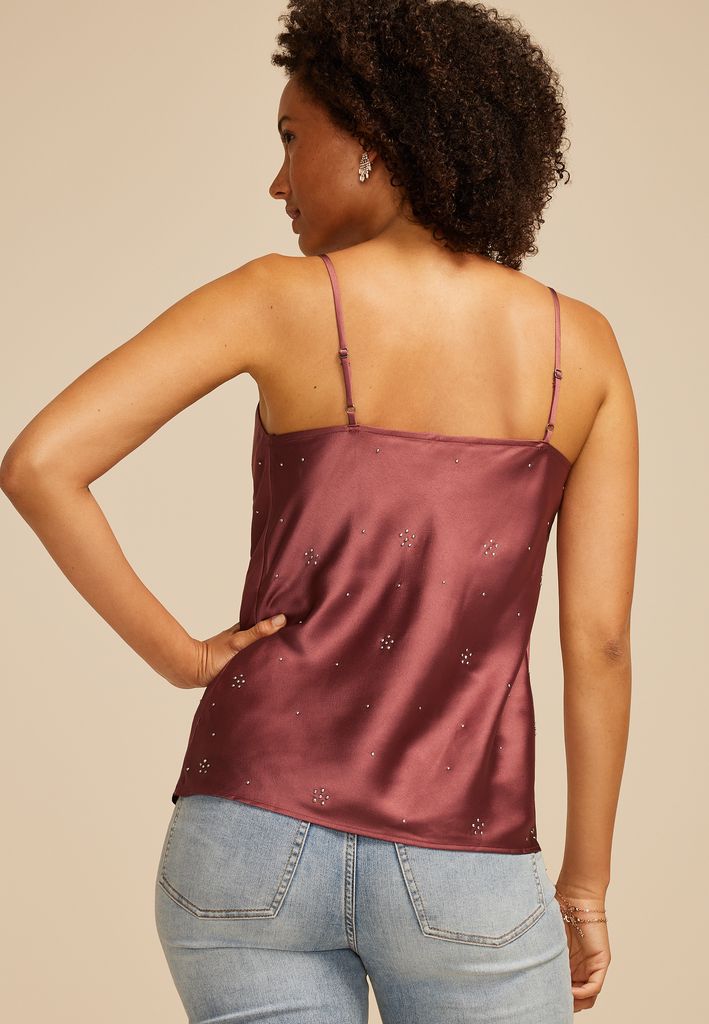 Be the first to review “Embellished Satin Cowl Neck Cami”
