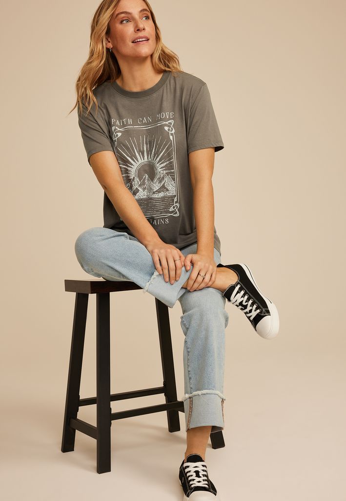- “Faith Can Move Mountains” mountain and sun design with a decorative border graphic