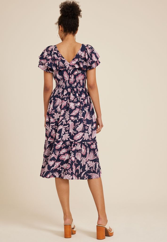 - tiered hemline hits below the knee