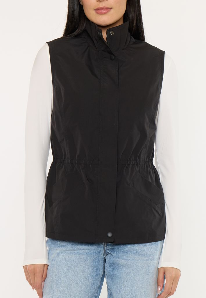 Meet your new layering essential—the Kancan Utility Elastic Waist Vest. Sleek and versatile, this piece combines modern utility with effortless style. The high-neck silhouette and elastic waist create a flattering shape, while functional pockets keep things practical. Perfect for transitional weather, this vest pairs beautifully with long-sleeve tees, denim, or activewear for a chic, on-the-go look.