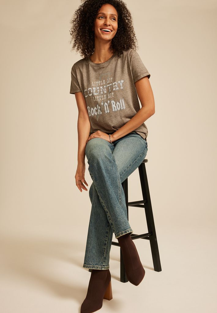- “Little Bit Country, Little Bit Rock ‘N Roll” rhinestones ightning bolt graphic