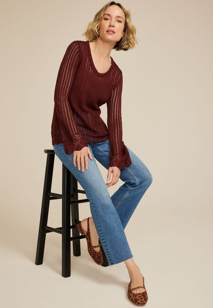 Be the first to review “Open Stitch Bell Sleeve Sweater”