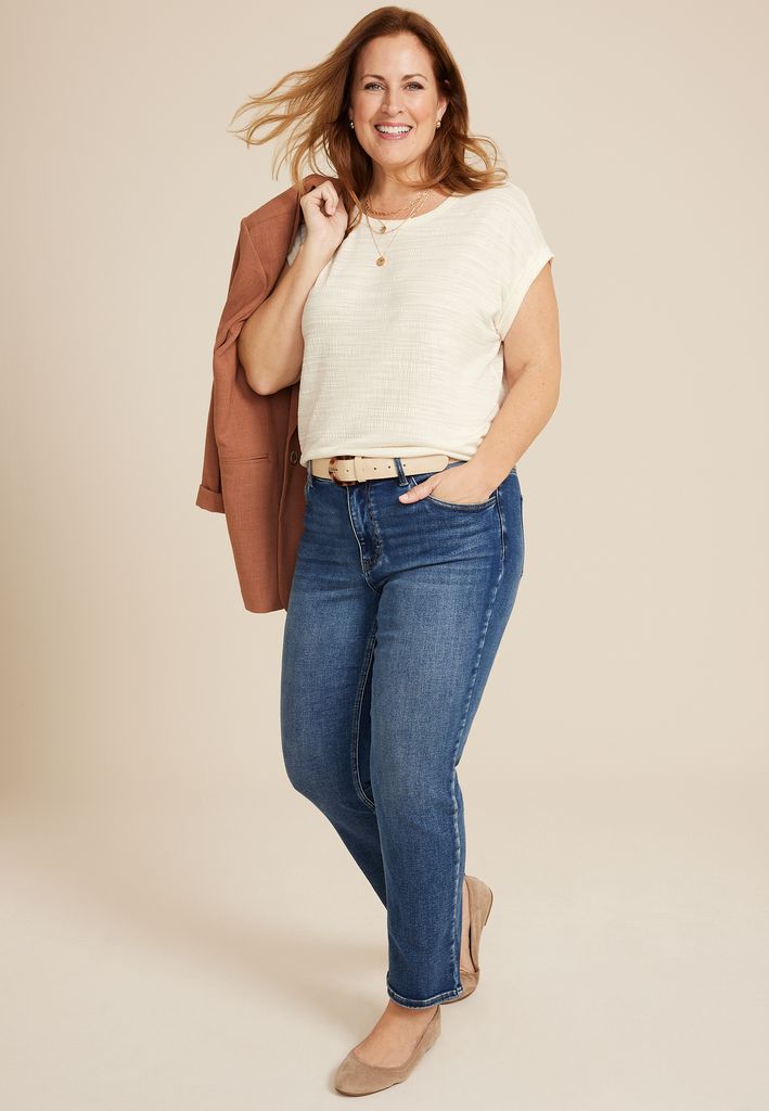 Plus Size 24/7 Clara Textured Short Sleeve Tee