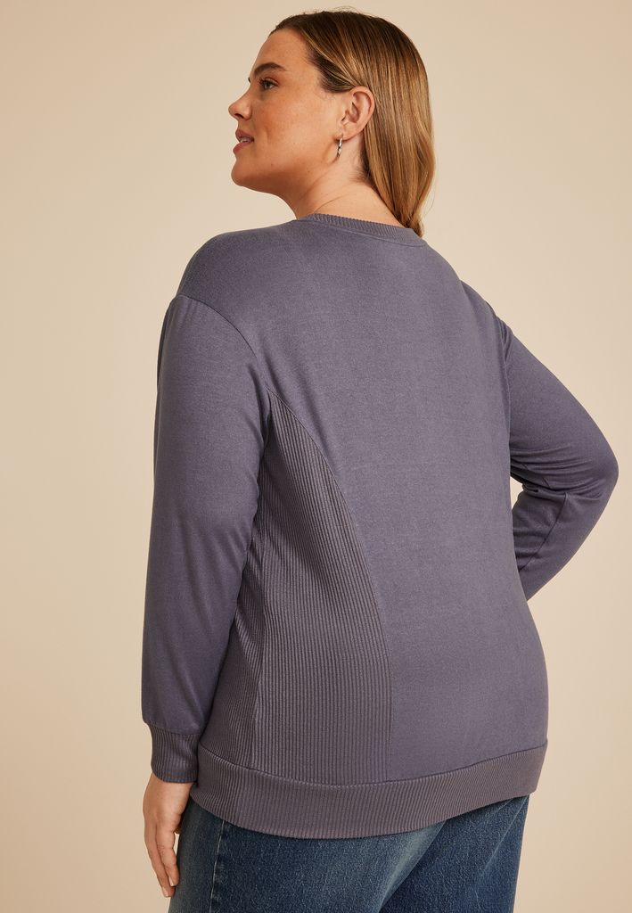 Plus Size 24/7 Hacci Ribbed Side Long Sleeve Tee