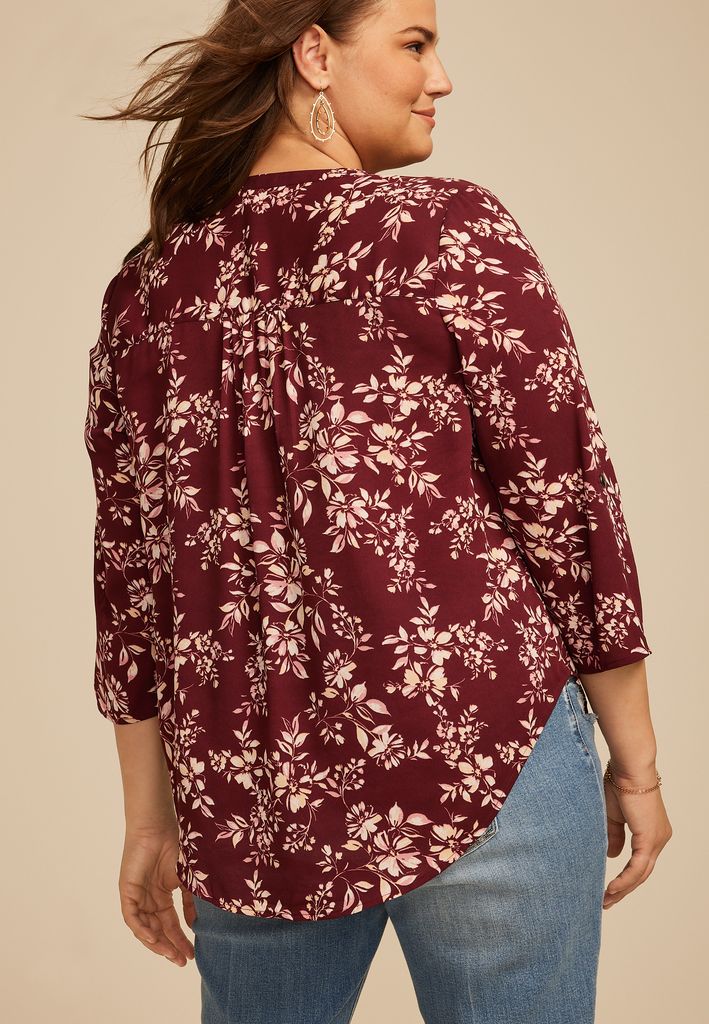 Plus Size Atwood Floral 3/4 Sleeve Popover Blouse