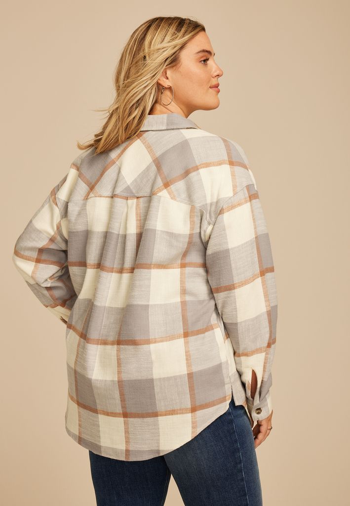 Plus Size Cabin Plaid Boyfriend Tunic Button Down Shirt