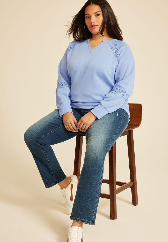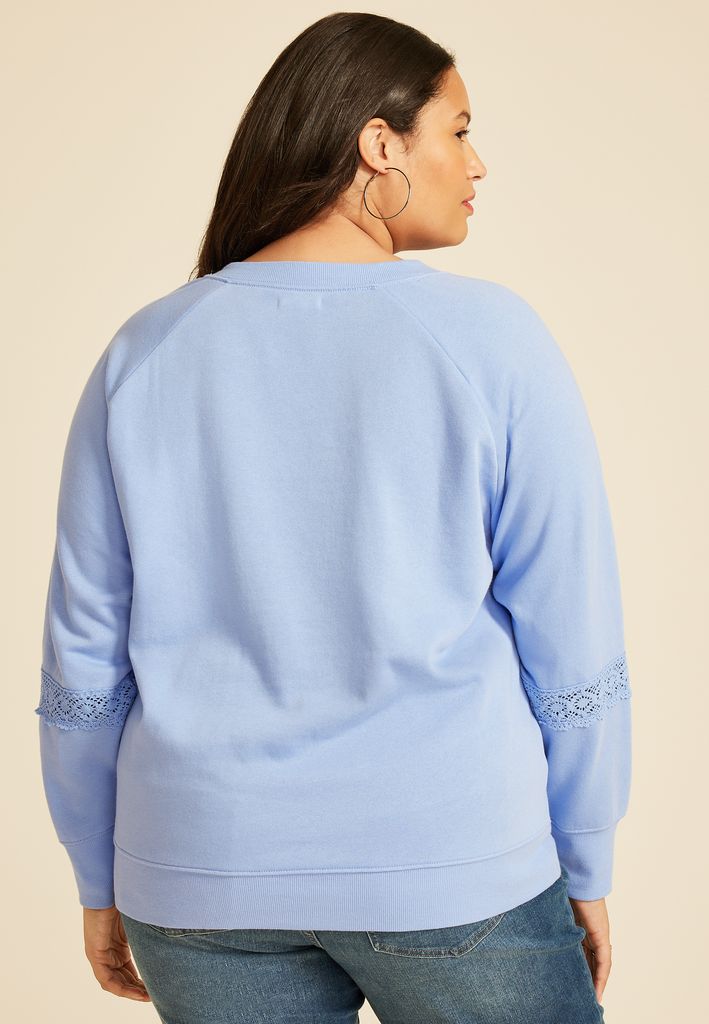 - delicate lace insets along the shoulders and lace band detail around the lower sleeve