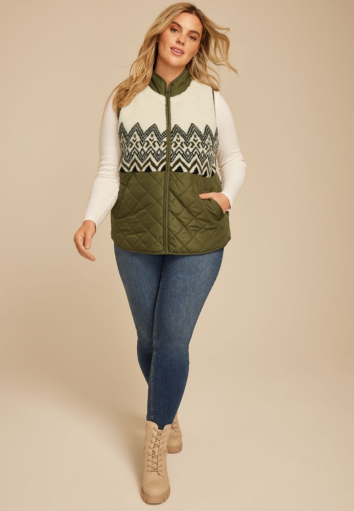 Be the first to review “Plus Size Fair Isle Sherpa Quilted Vest”