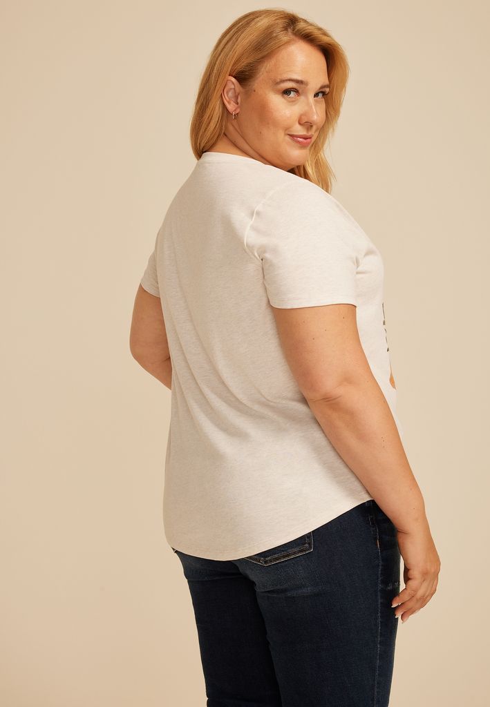 Plus Size Floral Embroidered Give Thanks Classic Fit Graphic Tee