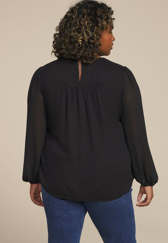 - high neckline with sheer panel insert detail