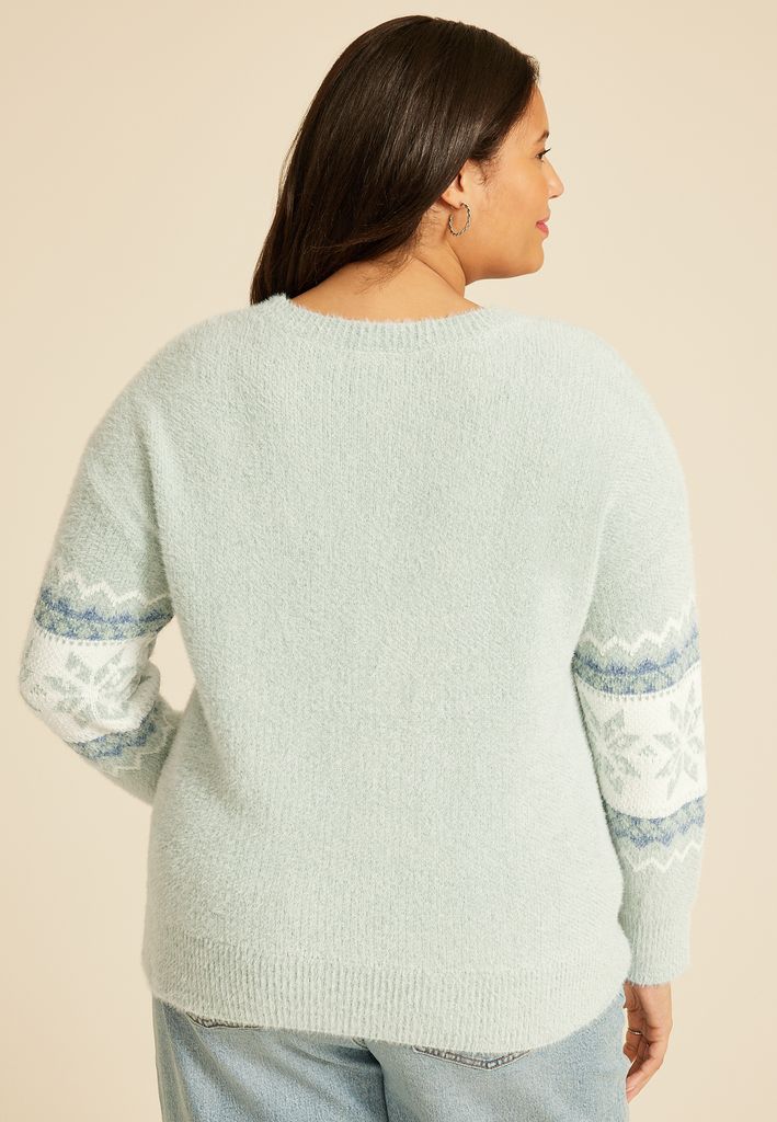 - fair isle inspired design featuring snowflake motifs and zigzag borders
