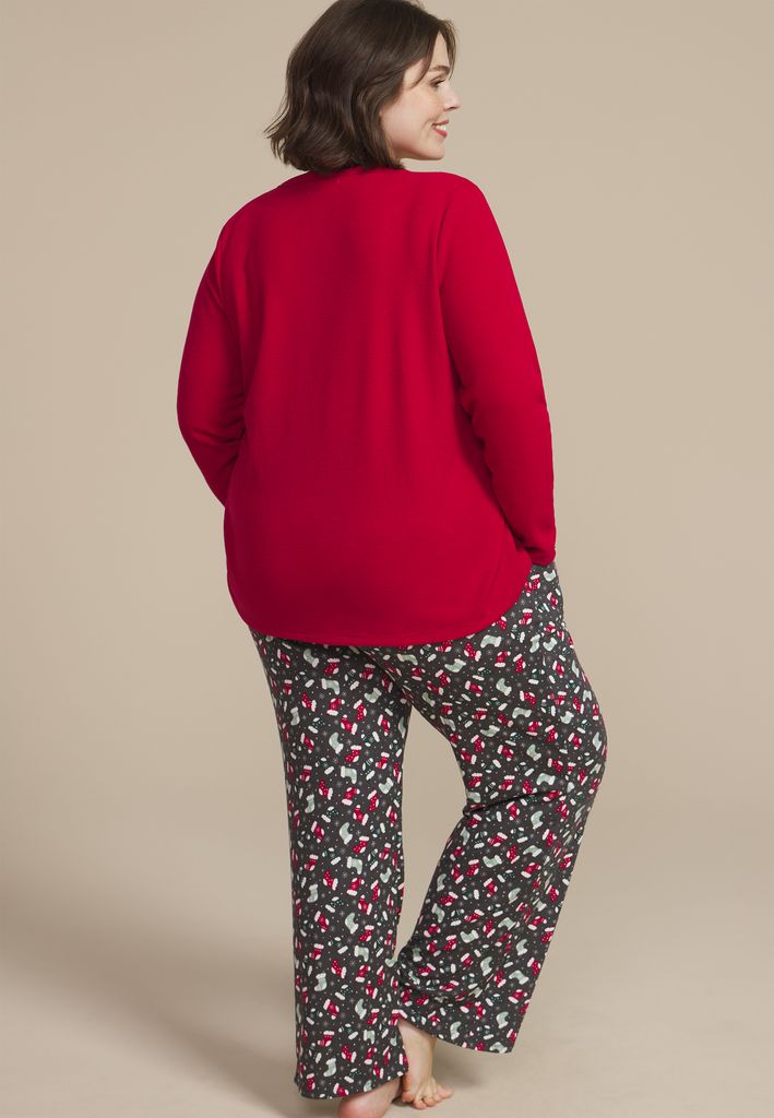 - all over red and green holiday stockings and snowflakes