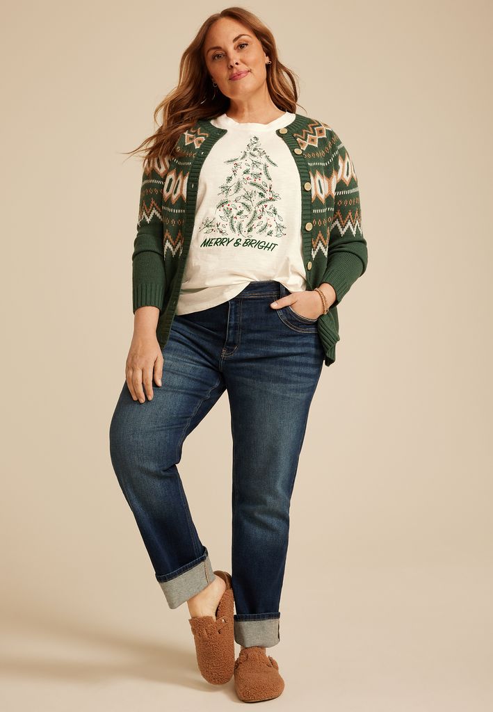 Plus Size Merry And Bright Embroidered Classic Fit Graphic Tee