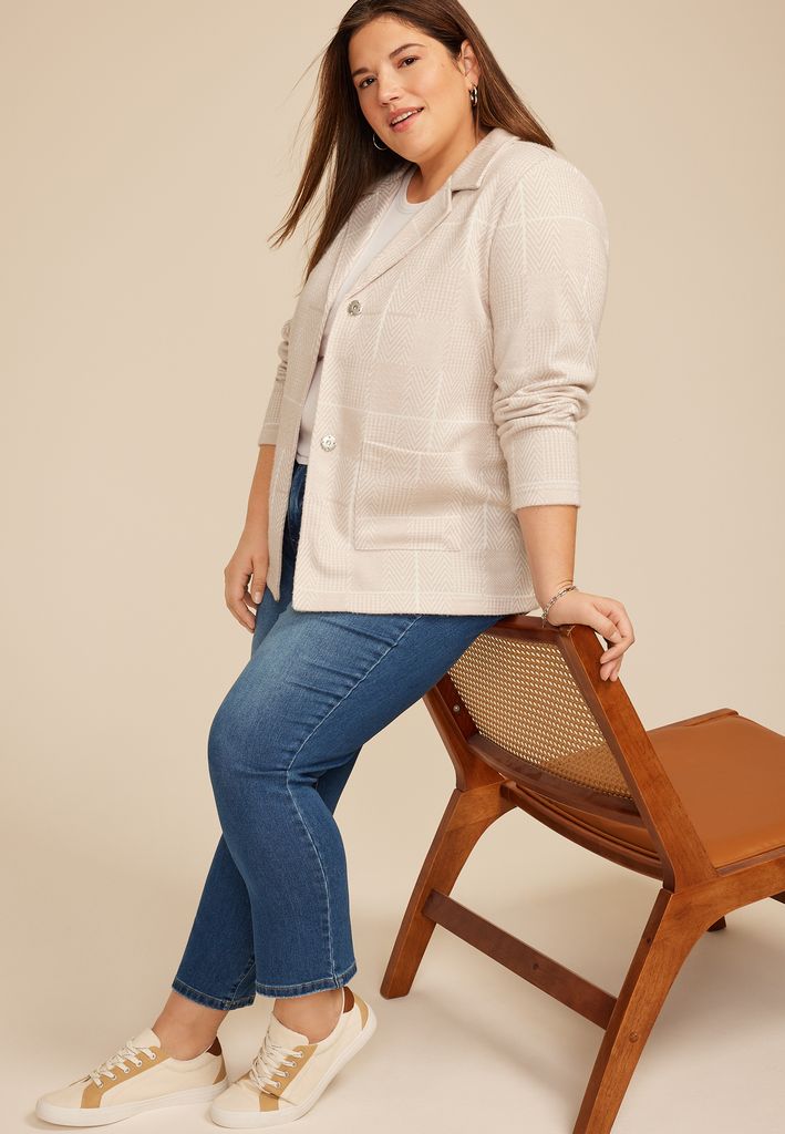 Be the first to review “Plus Size Neutral Houndstooth Blazer”