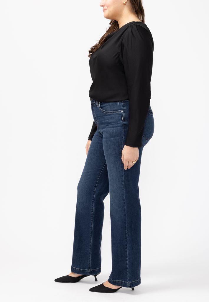 - trouser jean: A refined denim style with a tailored silhouette, wide leg, and clean finish perfect for dressing up or down.