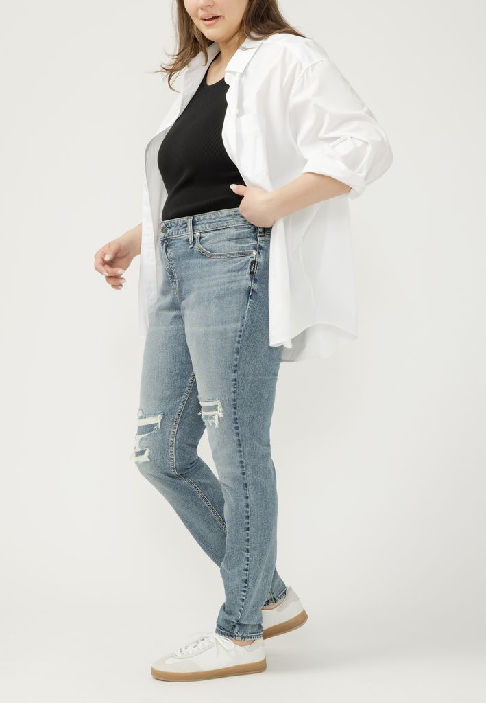 Plus Size Silver Jeans Co.® Elyse Backed Ripped Mid Rise Skinny Jean