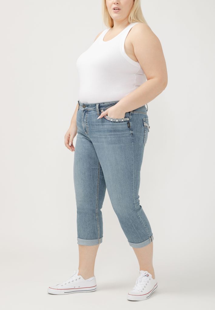 Plus Size Silver Jeans Co.® Elyse Mid Rise Luxe Stretch Americana Cuffed Capri