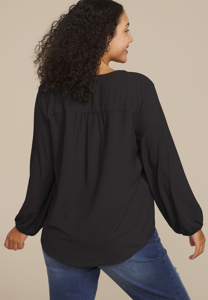 Plus Size Silver Trim V Neck Blouse