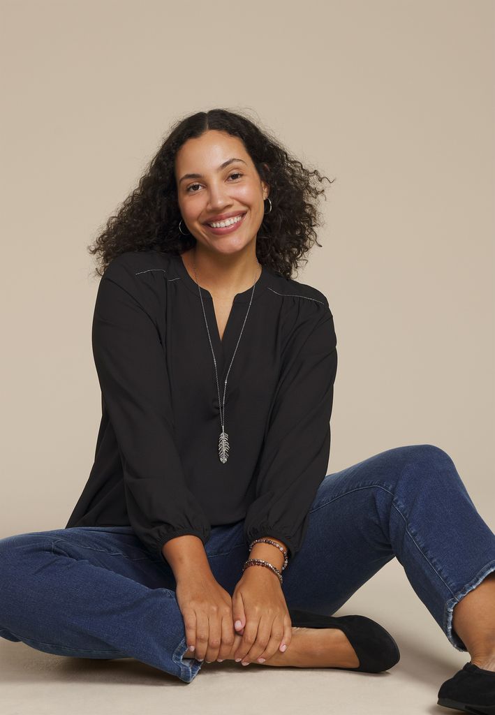Be the first to review “Plus Size Silver Trim V Neck Blouse”