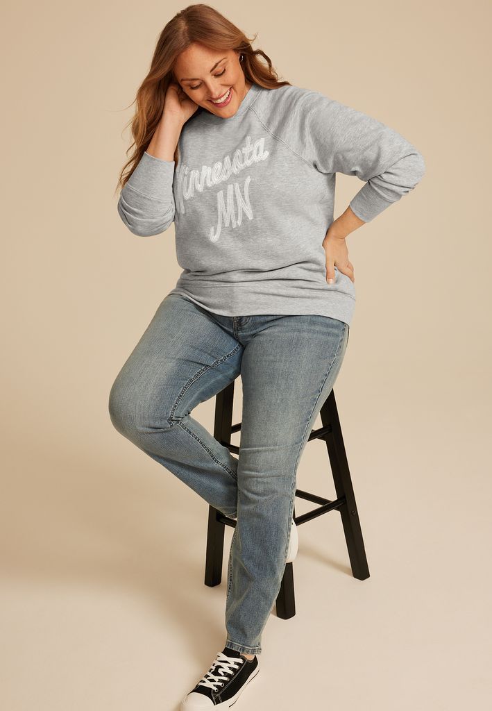 Plus Size State Embroidered Crew Neck Sweatshirt