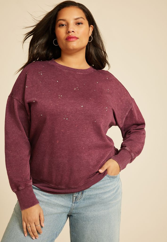 Plus Size Studio Y Embellished Crewneck Sweatshirt