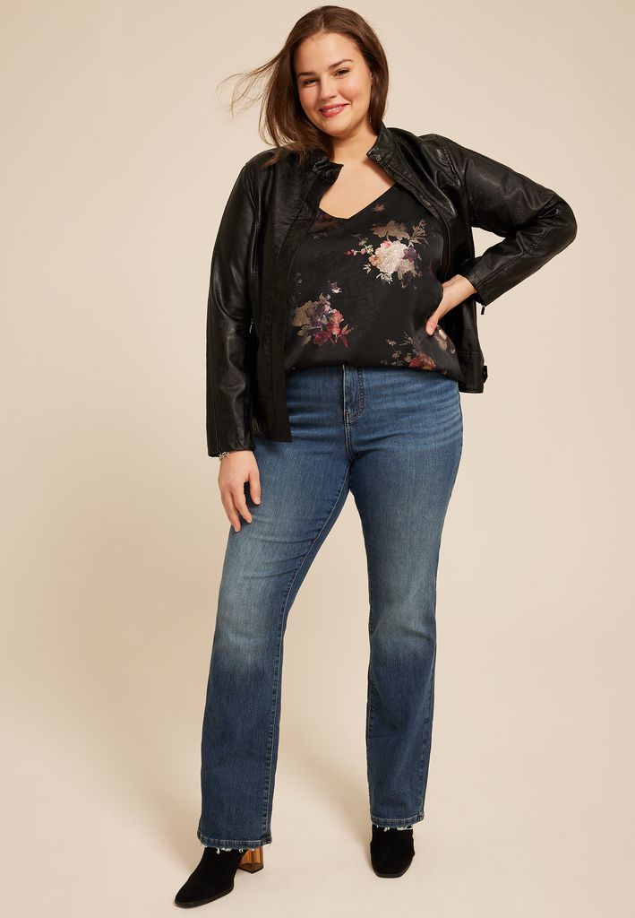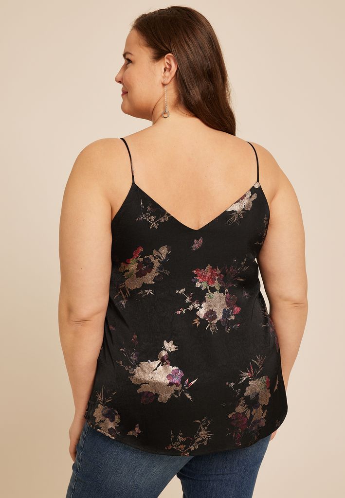 Plus Size Studio Y Metallic Floral V Neck Cami