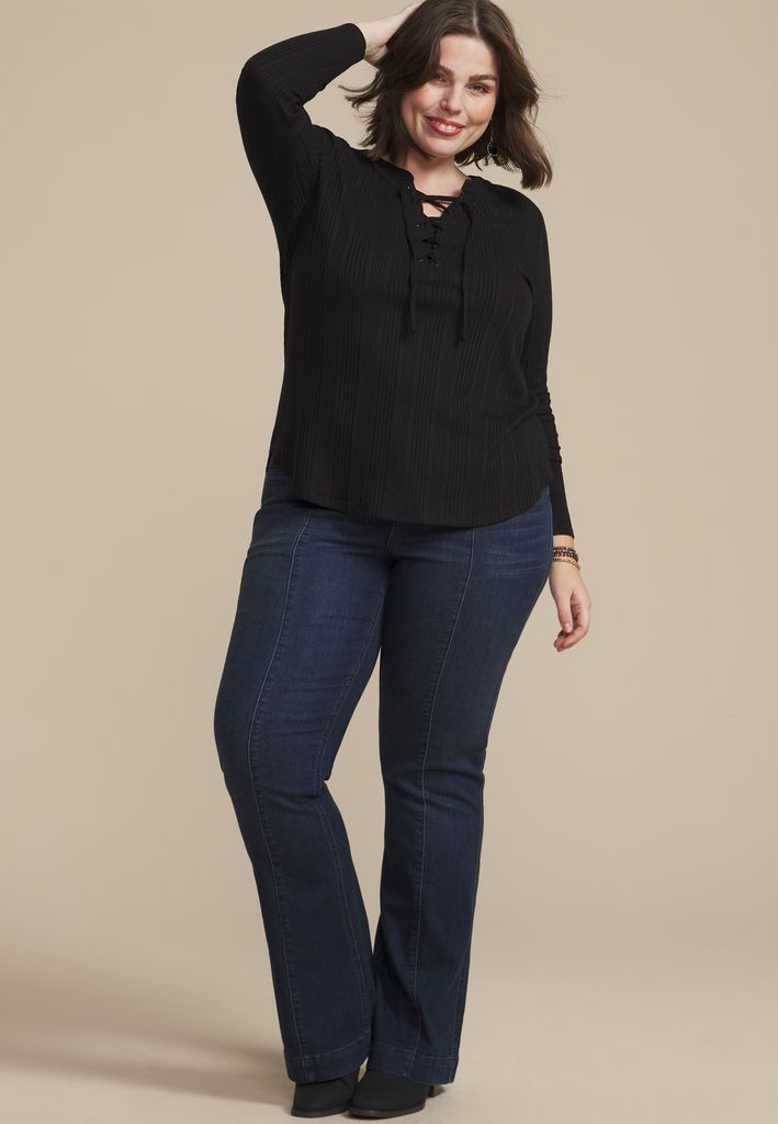 Plus Size Variegated Lace Up Top