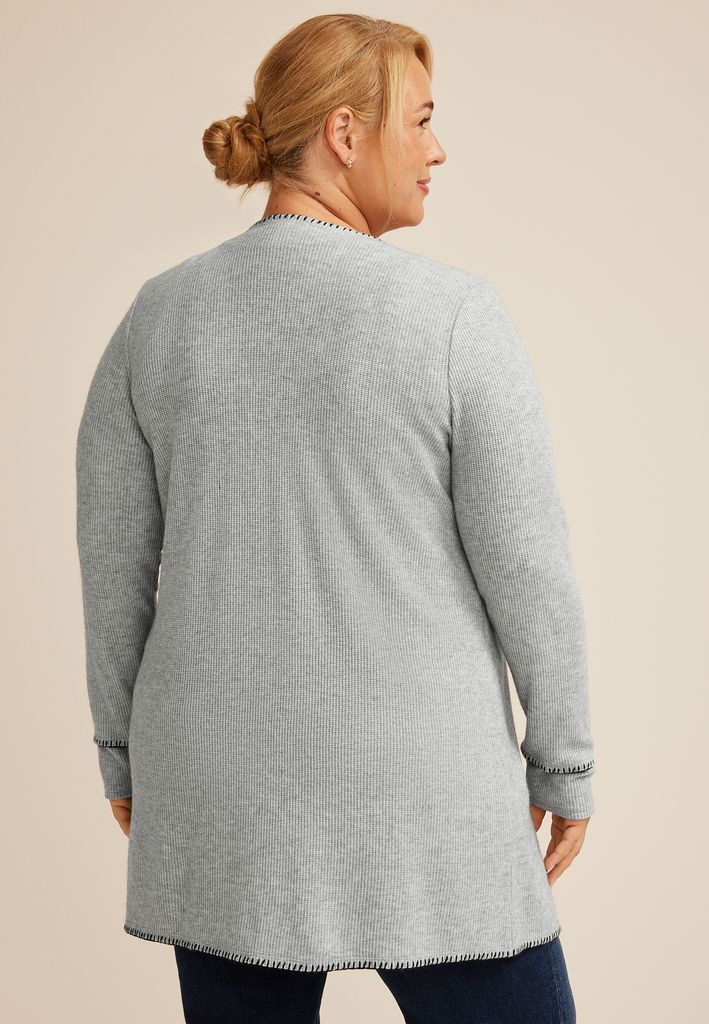 - whipstitch trim detailing along edges and cuffs