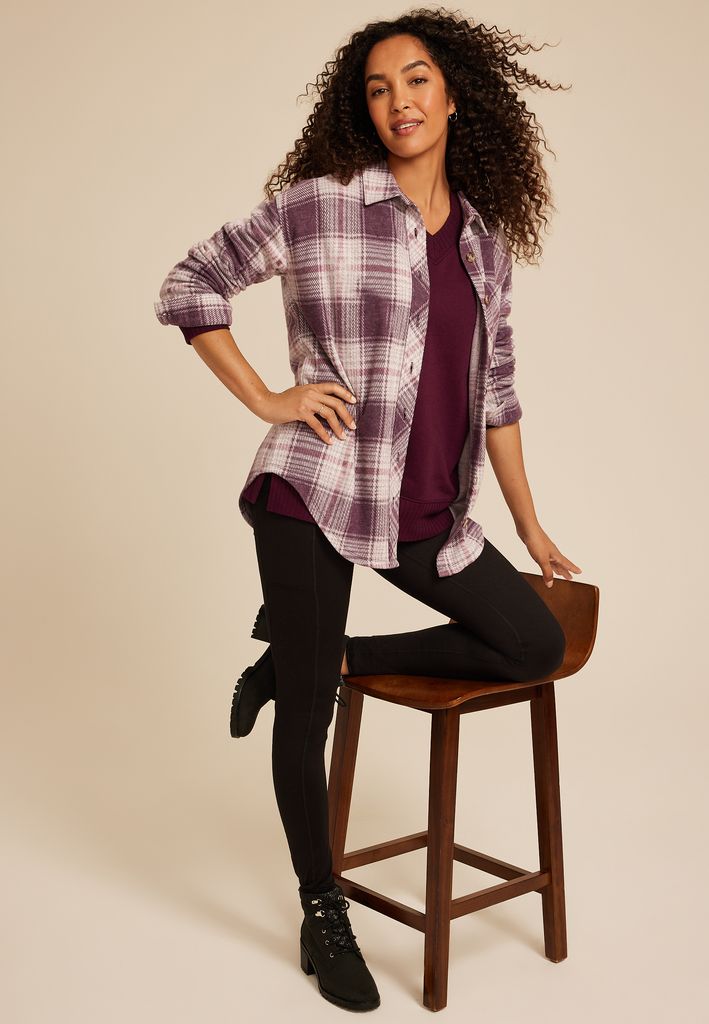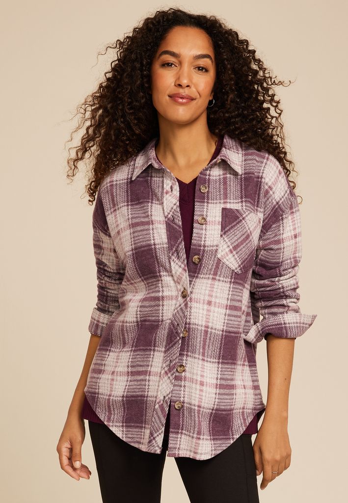 Plush Knit Plaid Boyfriend Button Down Shirt