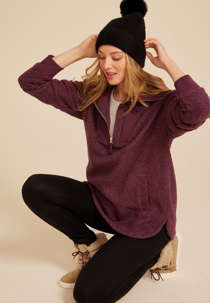 - quarter zip front with a zipper pull