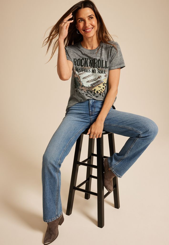 - licensed “Rock And Roll Soothes My Soul” guitar, animal print and roses graphic