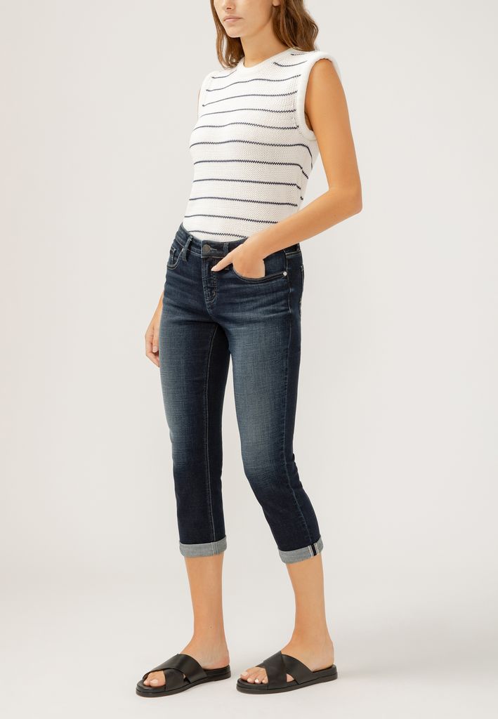 Silver Jeans Co.® Elyse Mid Rise Luxe Stretch Rolled Hem Capri