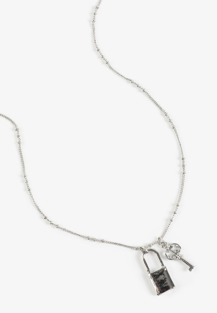 - features:a intricate vintage style key charm and a sleek polished lock charm