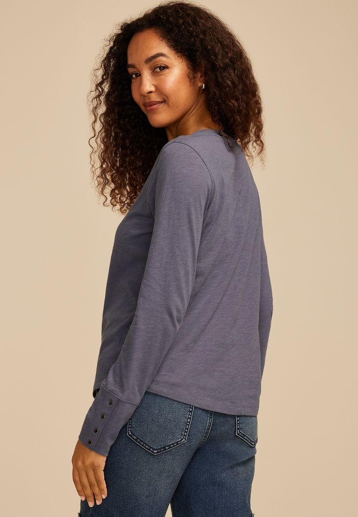 Be the first to review “Solid Long Sleeve Snap Button Cuff Top”