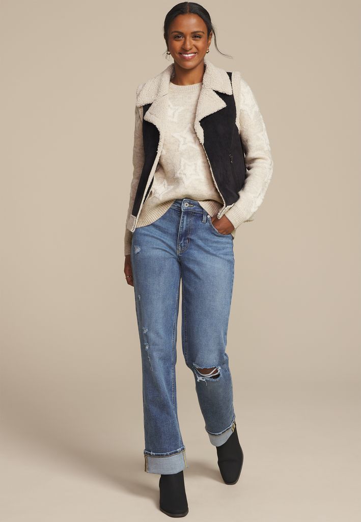 • cozy knit with teddy yarn accents