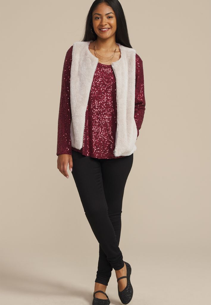 Studio Y Sequin Scoop Neck Top